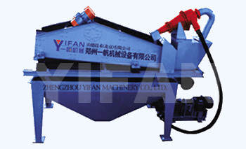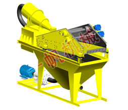 2. Working principle: The compound of sand and water is transported to cyclone, the sand that centrifugal classification concentrate provided to the vibrating screen by the heavy grit, sand and water are effectively separate after vibrating screen dehydration. Through Recycling Box, fine sand and mud and so on returned again to the pool, and then are exhausted from the exit when the liquid surface of pool is too high. The material weight concentration recovered by the vibrating screen is 70%- 85%. Adjusting fineness module may come true by changing pulp concentration, adjusting the flooding water yield, changing the grit mouth, then fulfilling its three kinds function— washing, dehydration and screening.
